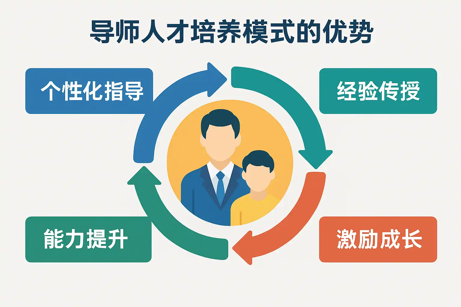 导师人才培养模式(Mentorship Program)指由经验丰富的导师对学员进行定向指导、陪伴成长,并帮助其实现专业能力与综合素质提升的培养机制。该模式在企业、高校和科研机构中被广泛采用,具有如下核心优势: