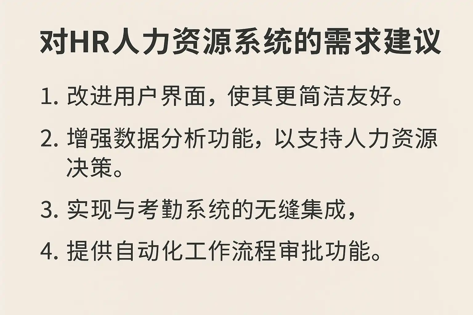 通过系统化的方法和高效工具,HR团队能够精准、高效地提出系统需求建议,助力企业数字化人事管理转型。