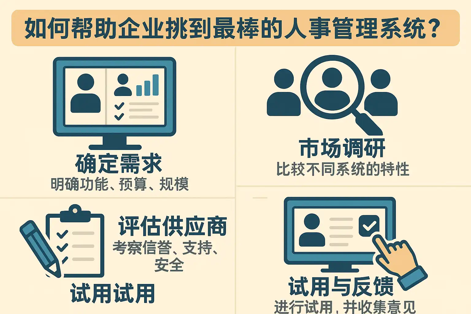 企业在选择人事管理系统时,建议按照以下流程进行,确保选型科学、落地效果好: