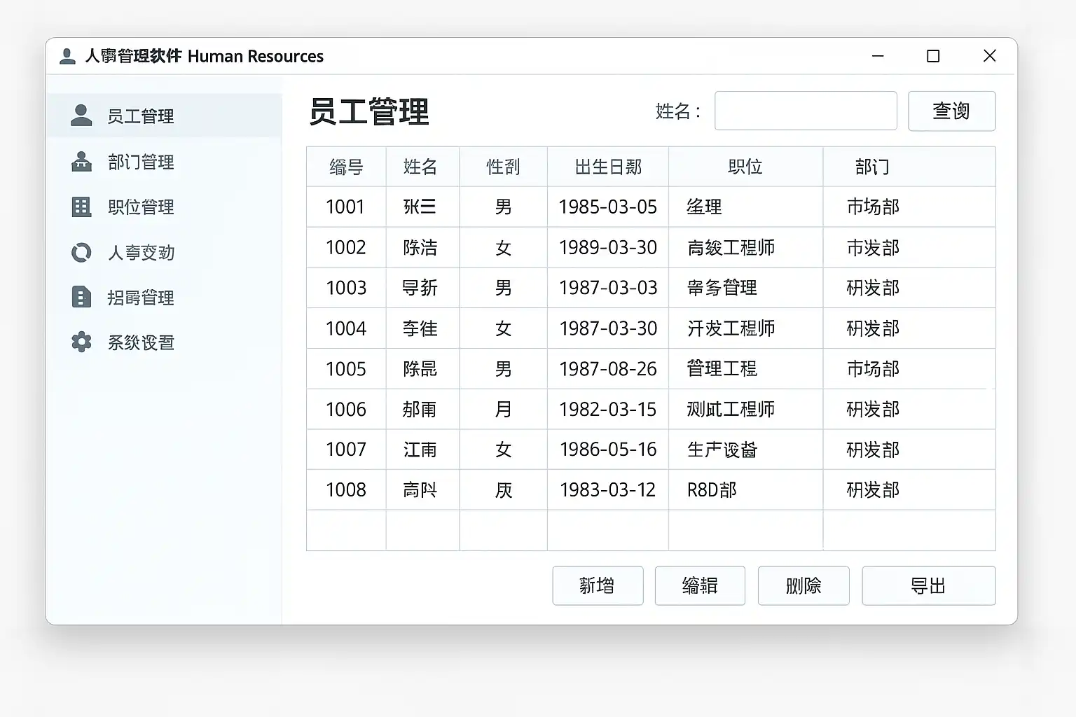 单机版人事管理软件通常集成考勤与薪资模块,功能包括: