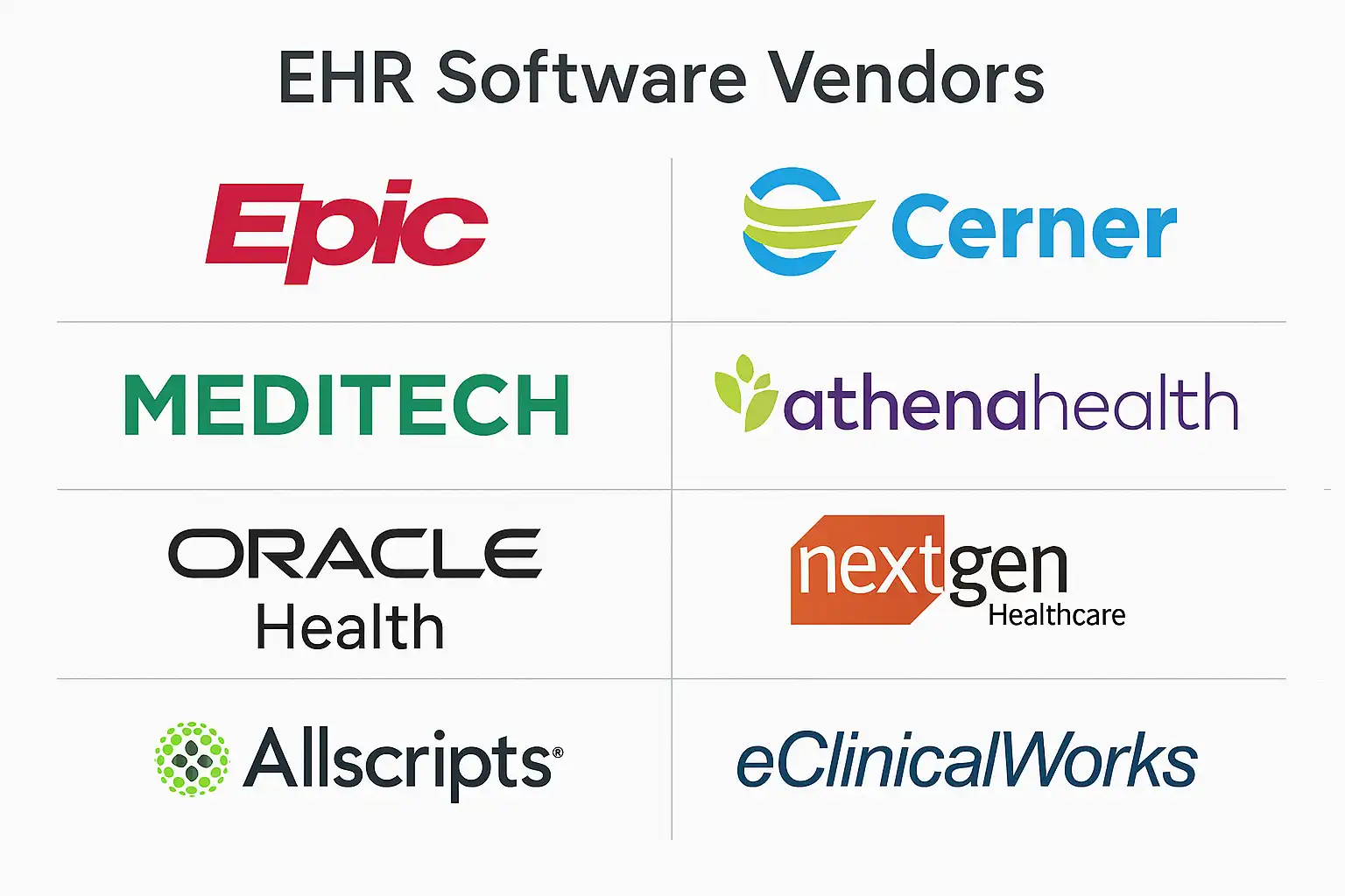 - Meditech:专注于社区医院,提供稳定且易用的EHR解决方案。