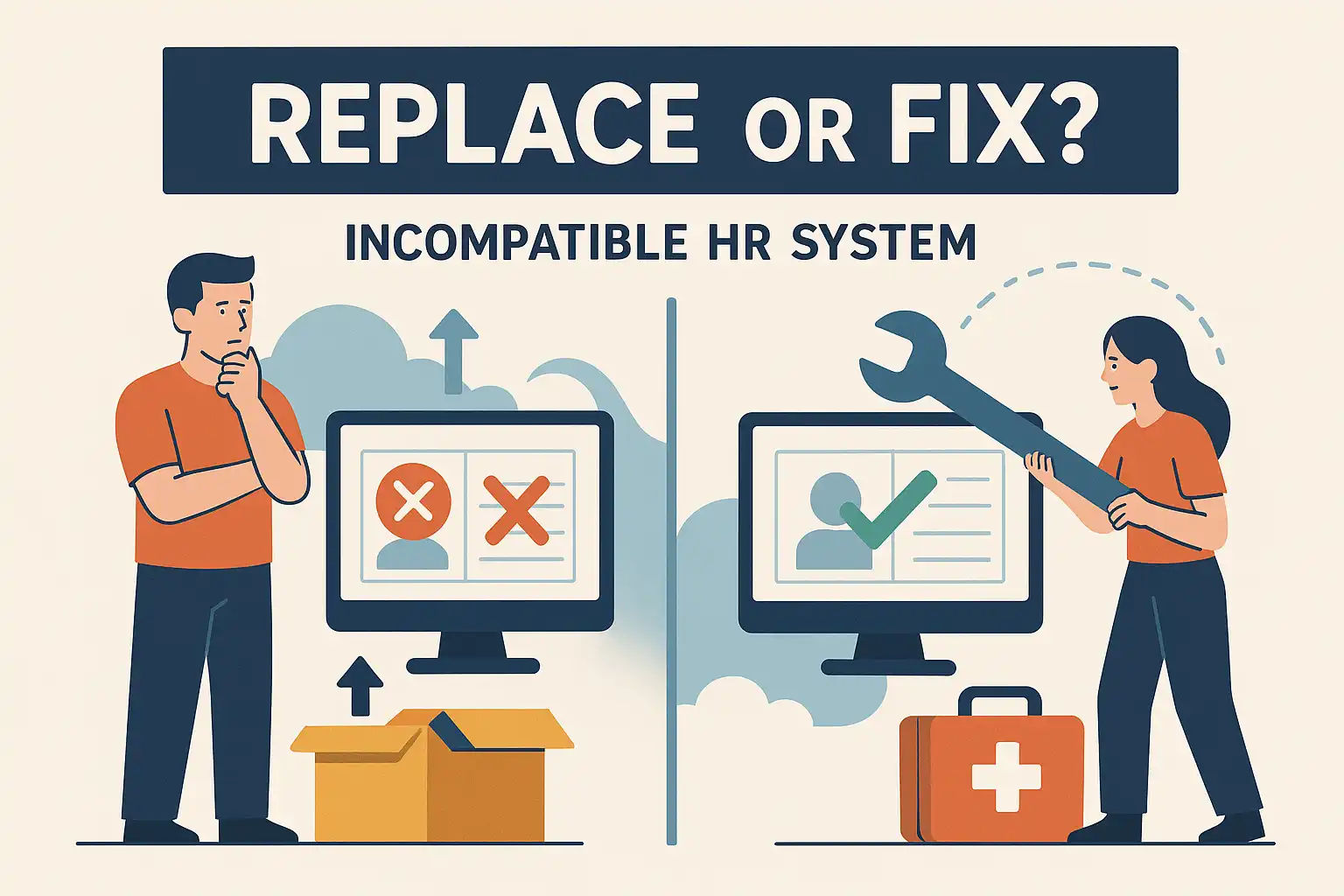 我公司现有人事管理系统运行中出现了一些问题,考虑是修补现有系统还是直接更换新系统比较合适?两者的利弊到底是什么?