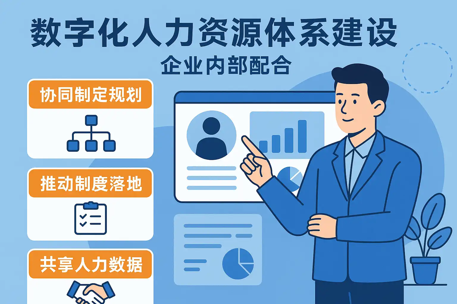 在数字化人力资源体系建设中,实现企业内部有效配合主要依靠以下几点: