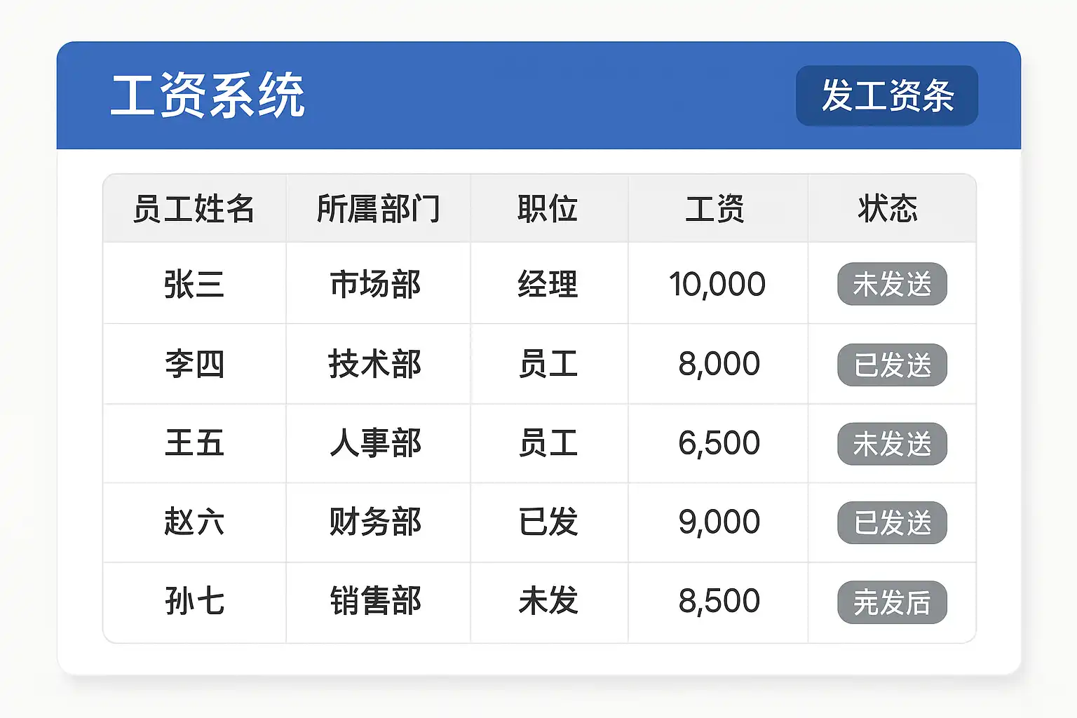 | 多终端支持 | PC、移动端、微信/钉钉无缝连接 | 员工随时随地查工资条 |
