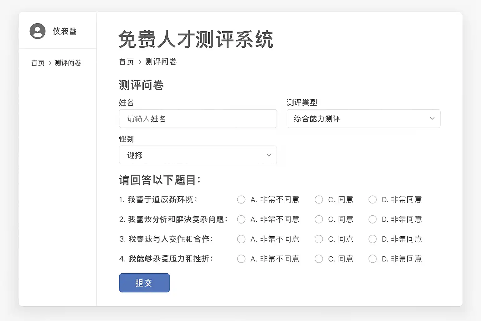 免费人才测评系统核心功能包括: