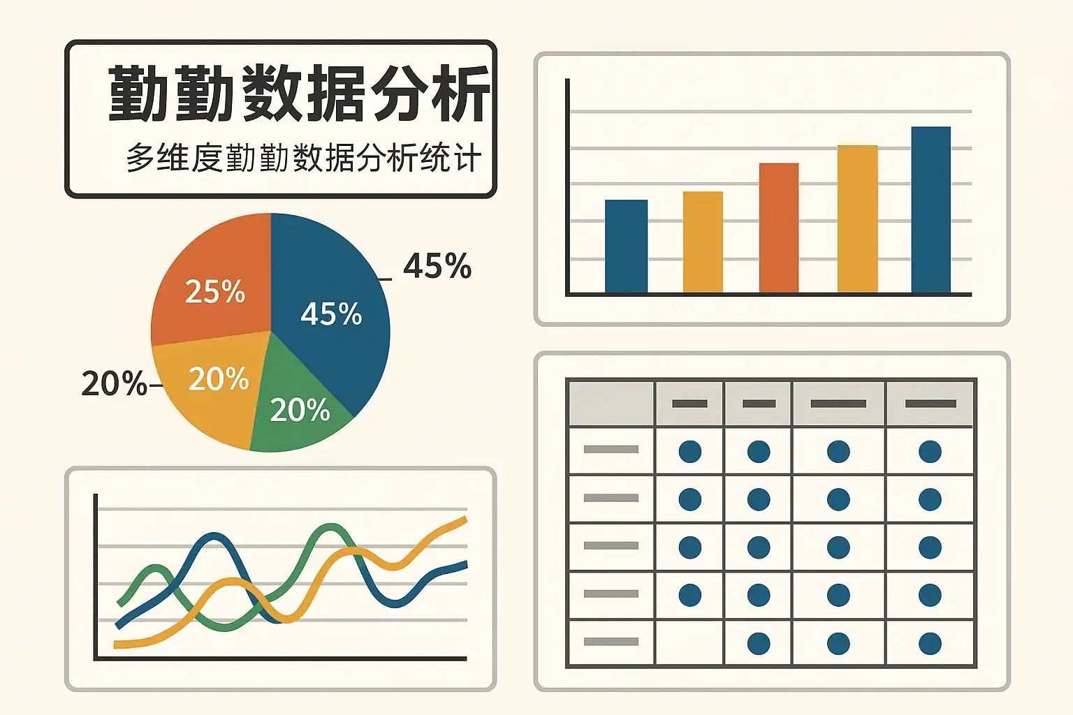 多维度考勤数据分析通过整合时间、人员、部门和异常数据,提供全面的员工考勤洞察,辅助管理决策: