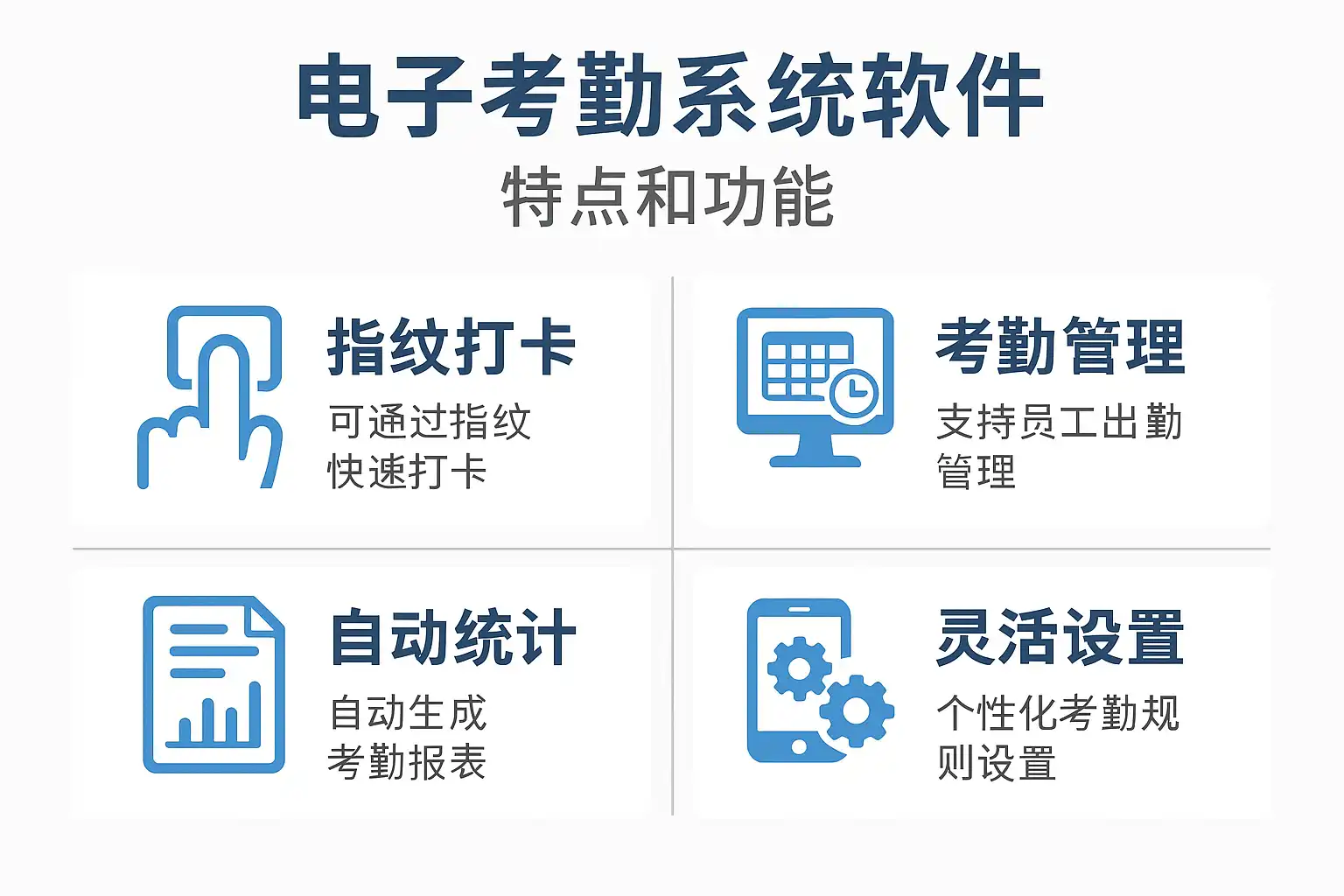 | 刷卡/指纹机型 | 刷卡机、指纹机 | 现场办公、工厂、门禁联动 | 硬件稳定,操作便捷,成本适中,但设备需维护 |