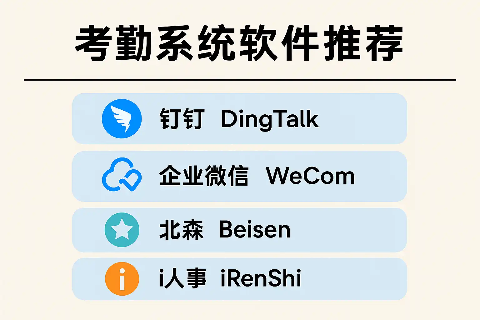 - 用友考勤系统:功能齐全,适合大型企业。