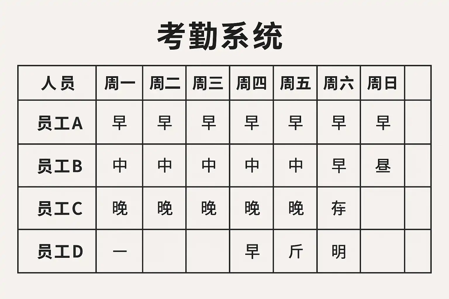 - 运用自动排班功能:利用考勤系统中的自动排班模块,根据员工工时和岗位需求智能生成排班表。