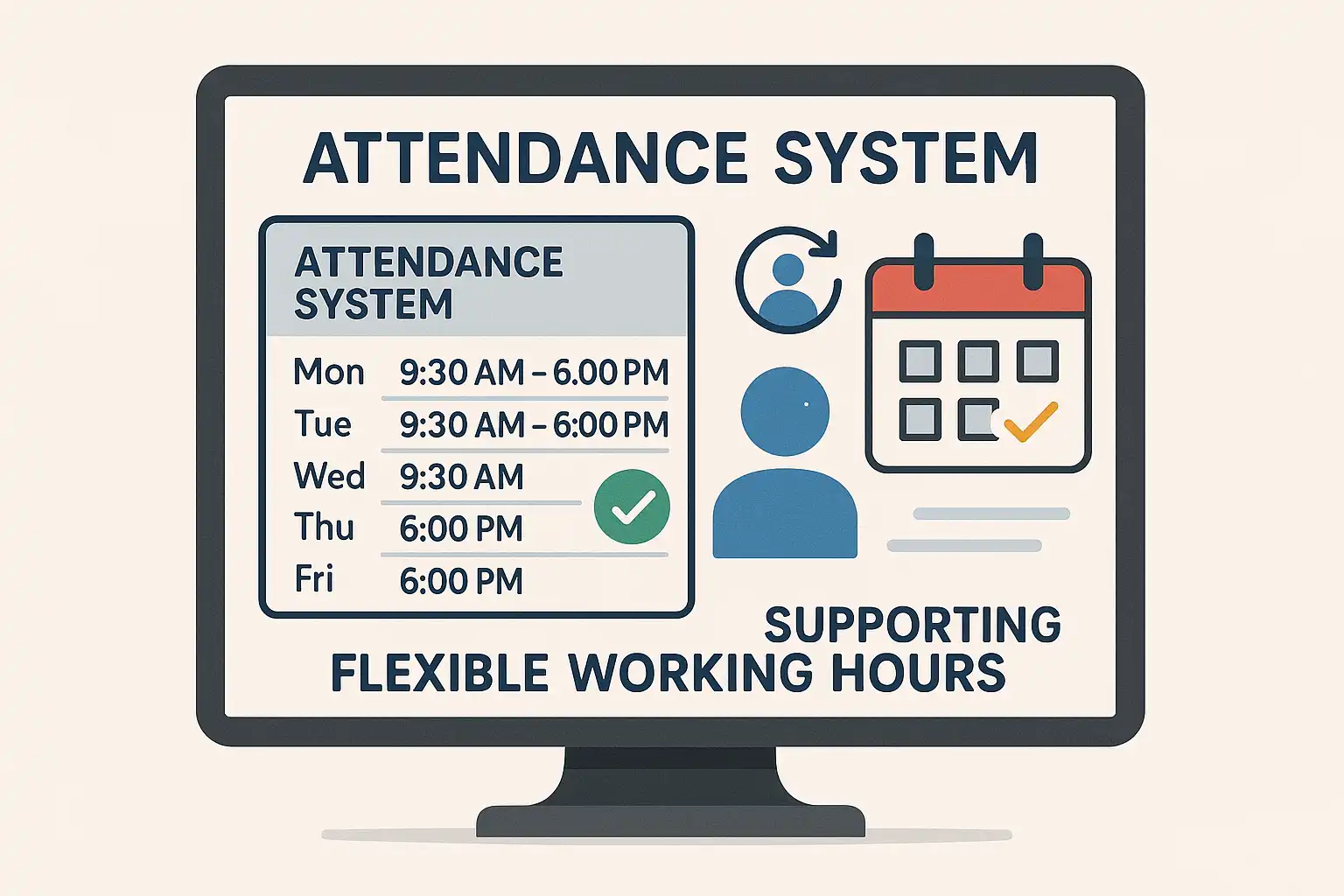 | 系统设置 | 后台配置弹性时段 | 实现自动统计,减少人工误差 |