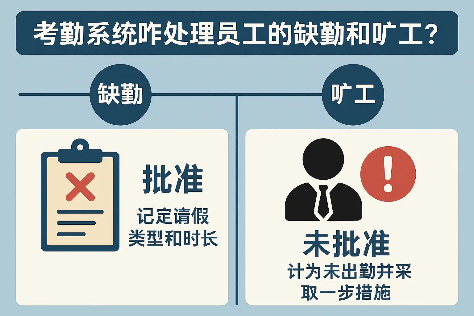 | 处罚缺勤旷工一刀切 | 忽视合理原因,影响士气 | 细化假种与审批流程,区别对待 |