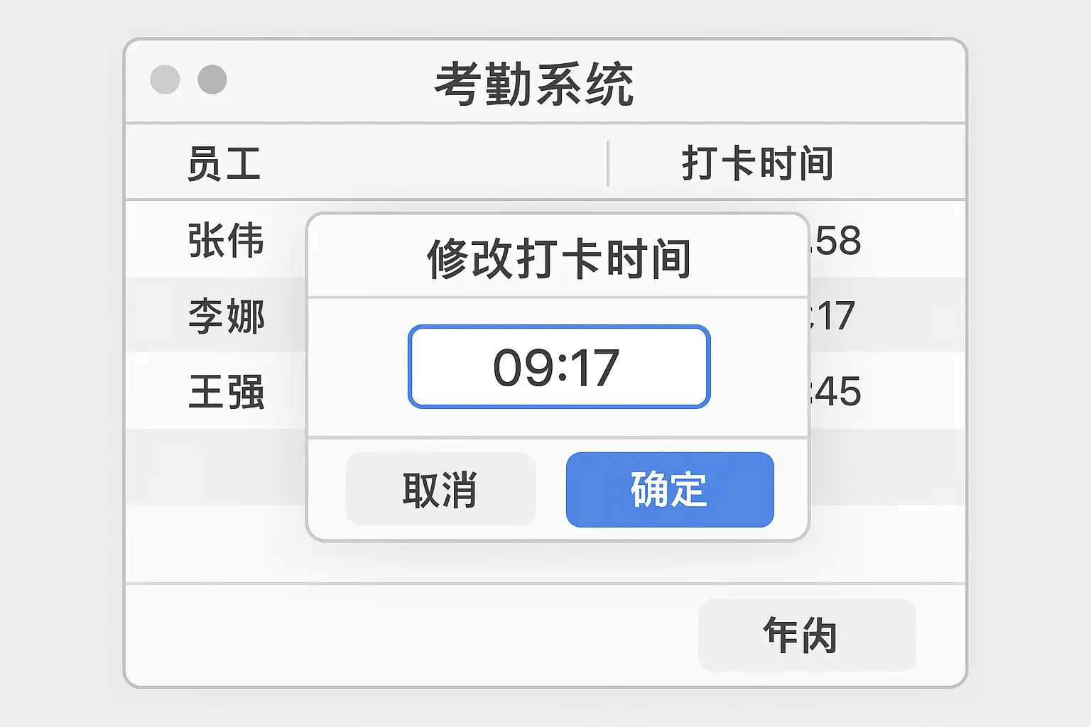 - 设置合理的操作权限,只允许HR或主管进行打卡时间修改。