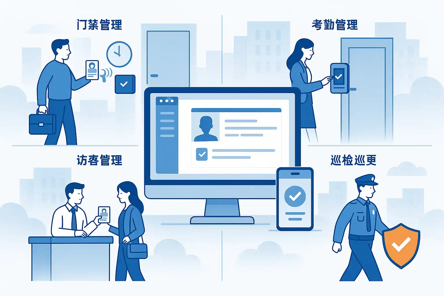 | 多场景集成 | 与考勤、访客、门禁、设备管理等模块无缝集成 |