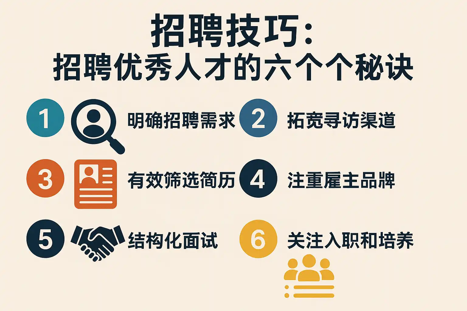 背景解读:六个秘诀相互配合,可形成闭环招聘管理体系。企业可根据自身实际,选用合适策略和工具,持续优化人才引进流程。