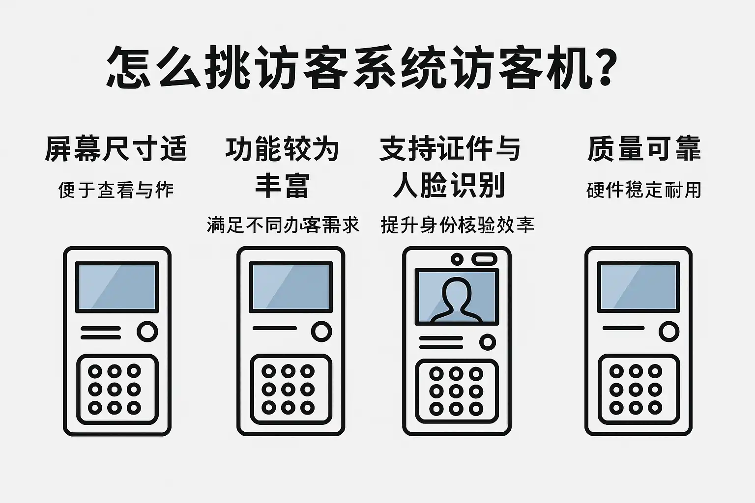 访客机种类多样,应用场景差别明显。选购前,需根据实际管理需求,梳理以下关键点: