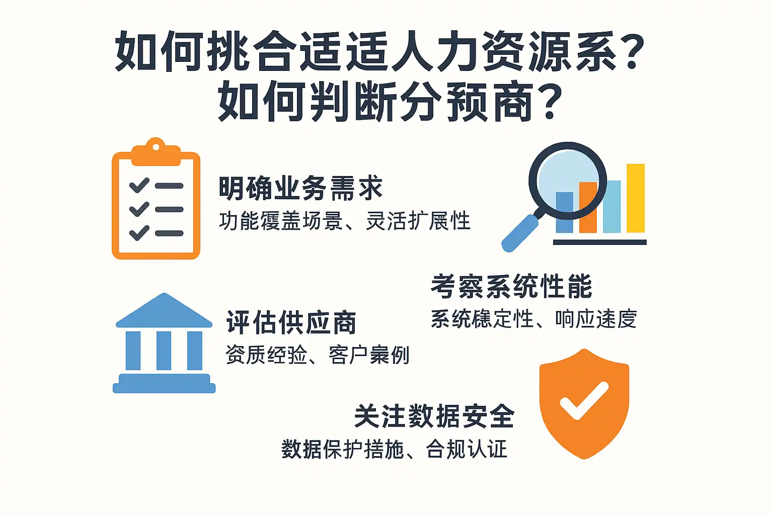 在挑选人力资源系统(HR系统)及其供应商时,企业需关注以下关键标准: