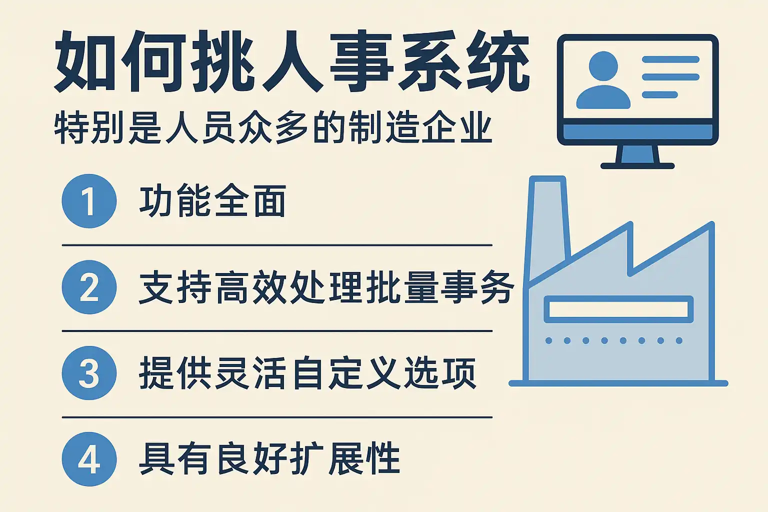 我所在的制造企业员工数量庞大,管理复杂。想知道人事系统怎么挑选,哪些核心功能是必须的?选择时应重点考虑哪些因素,才能提升管理效率?