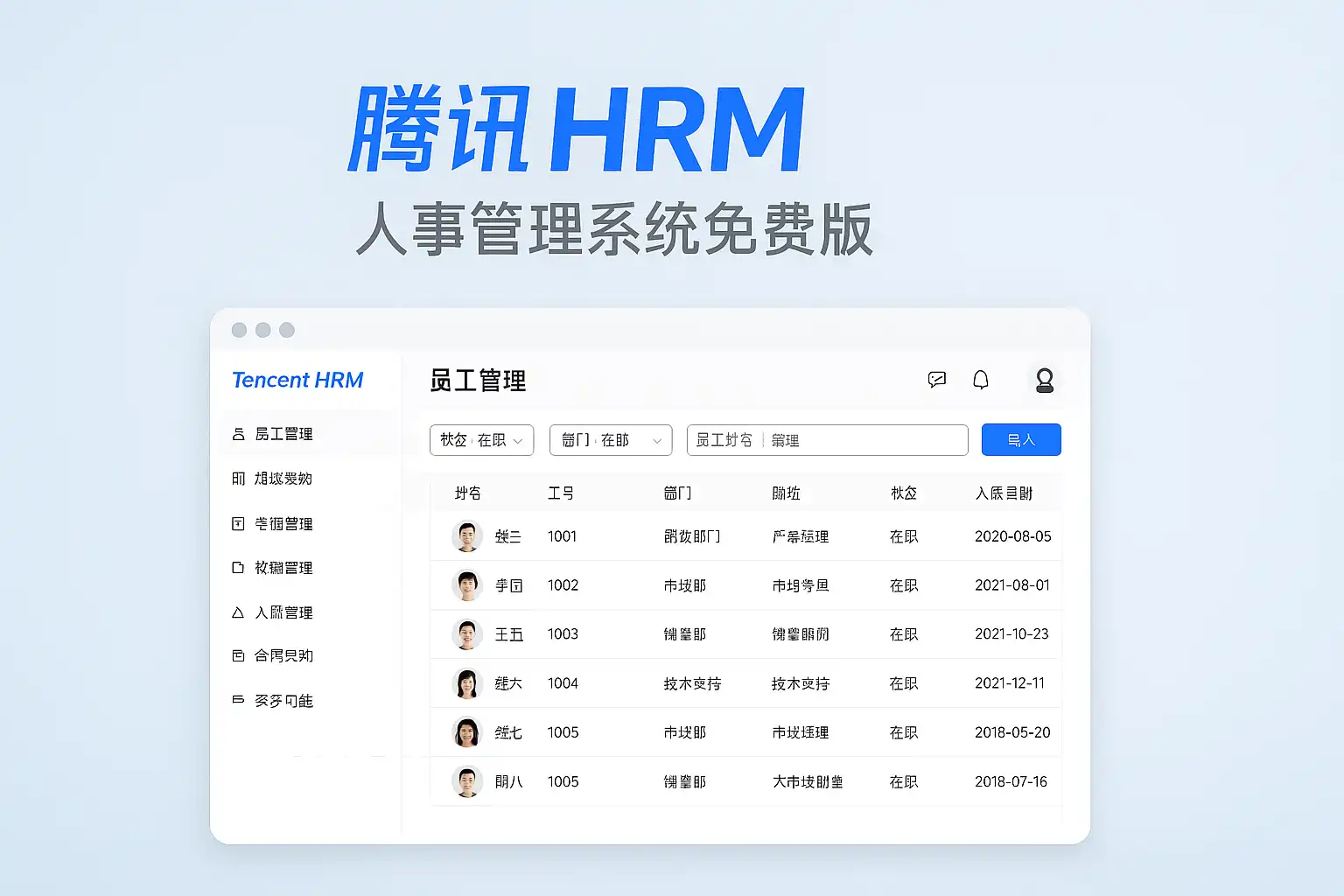 - 腾讯人事管理系统免费版:适合中小企业,支持员工档案管理、考勤和薪资基础功能。
