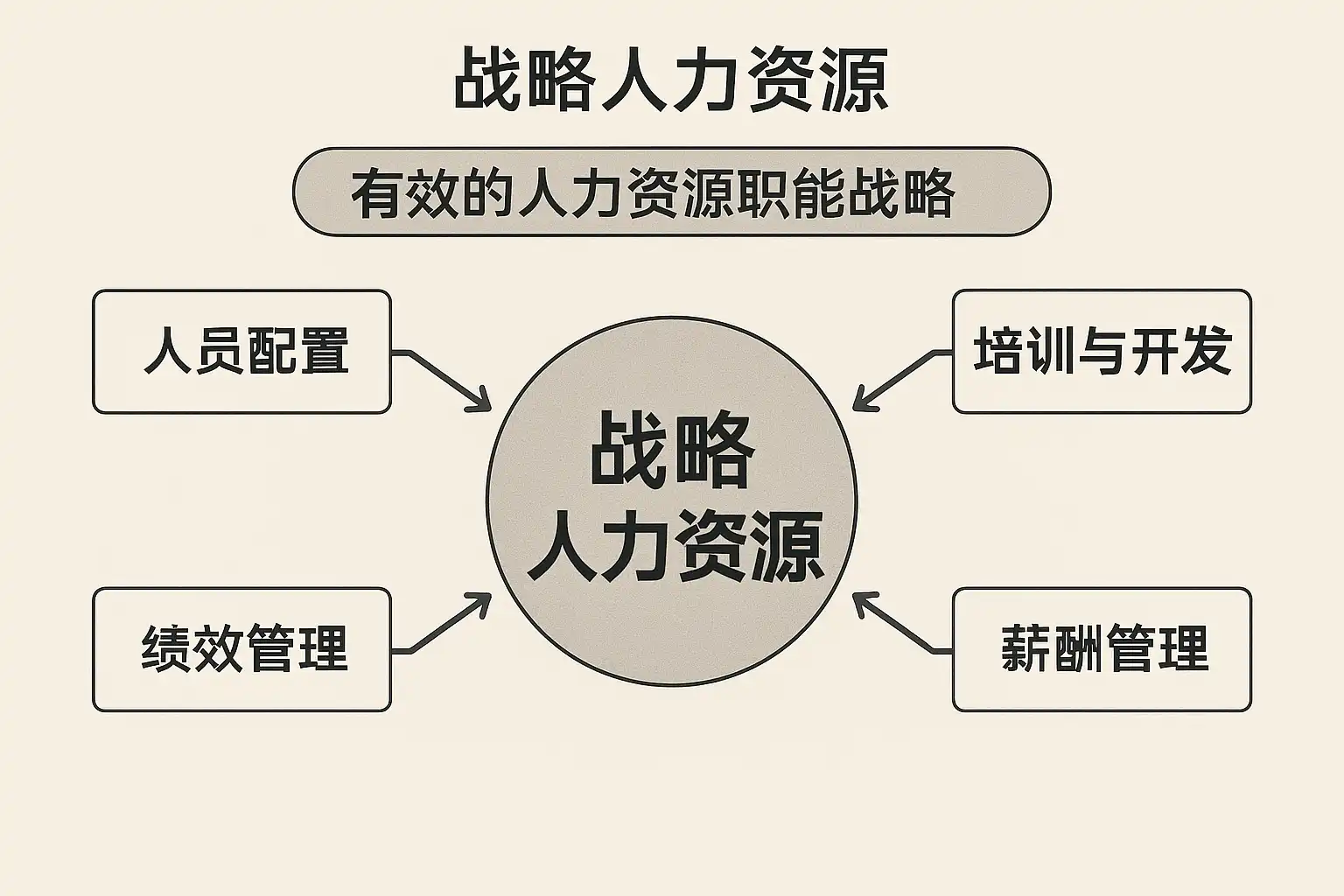 战略人力资源管理的核心要素不仅仅是上述五项,还包括持续学习、领导力发展、员工关系管理等维度。以下是战略人力资源体系的全景要素: