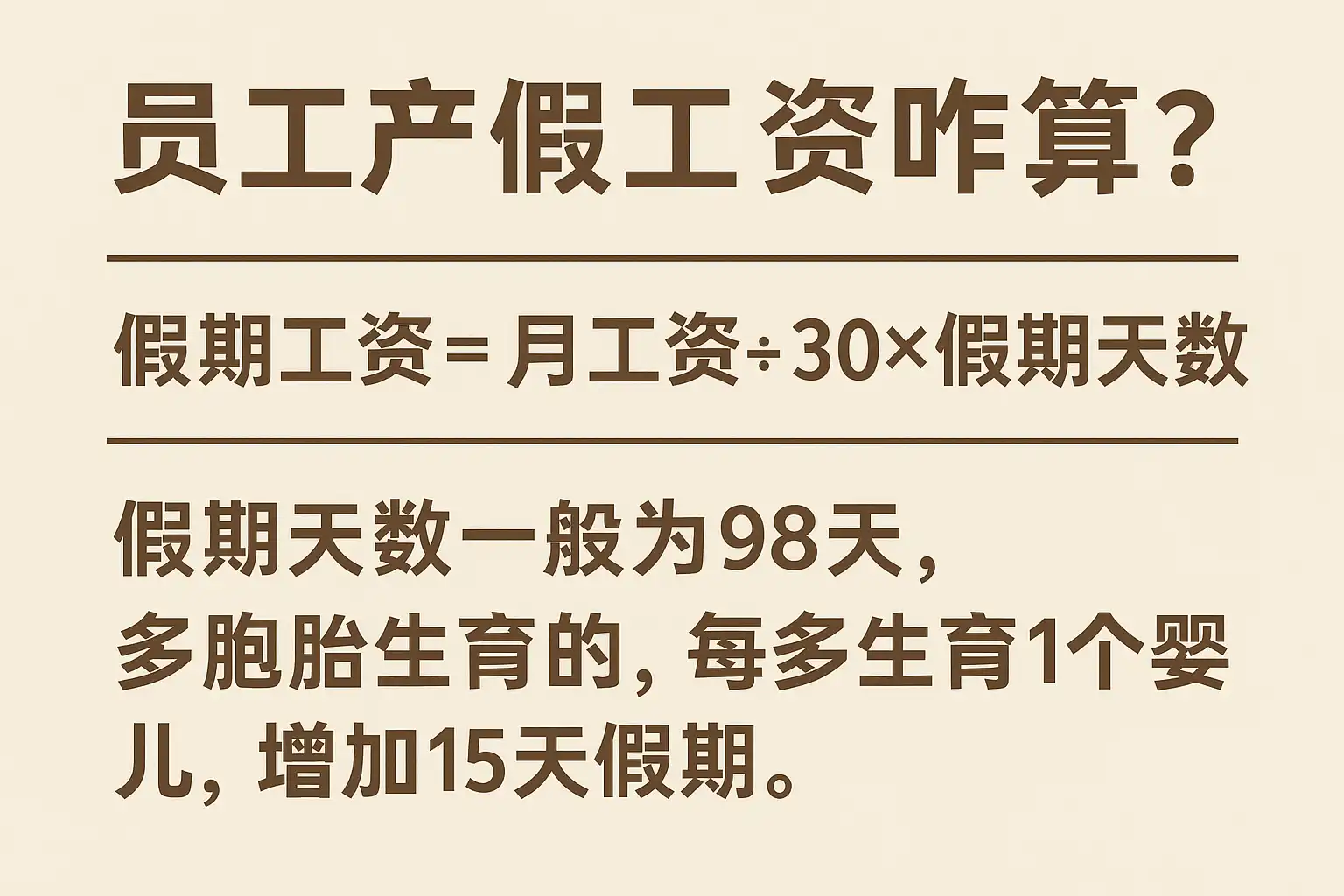 | 多胎 | 增加产假 | 按本地政策增加产假天数,工资按新增天数计算 |