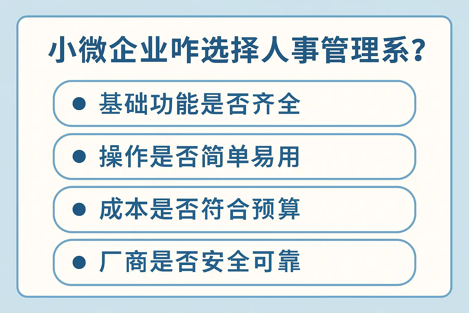 选择适合小微企业的人事管理系统,关键考量因素包括: