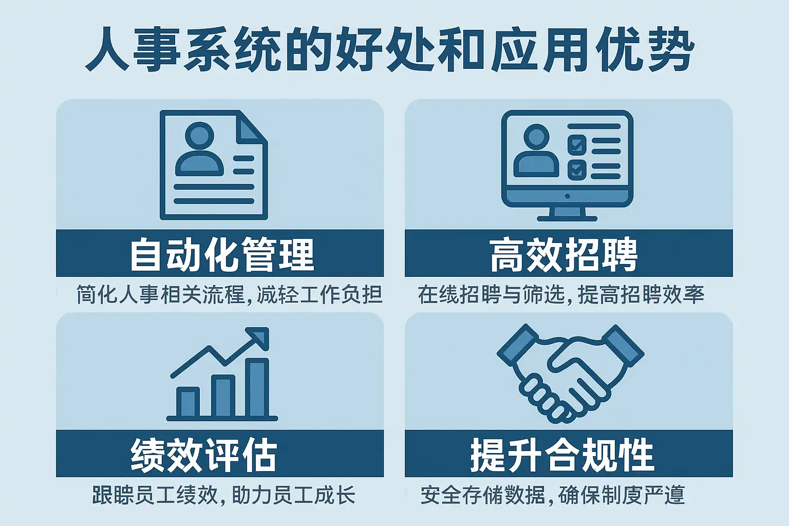 - 提升组织敏捷性和抗风险能力:疫情等突发事件下,人事系统可快速统计员工健康、远程办公分布等关键信息,辅助决策,保障运营连续性。