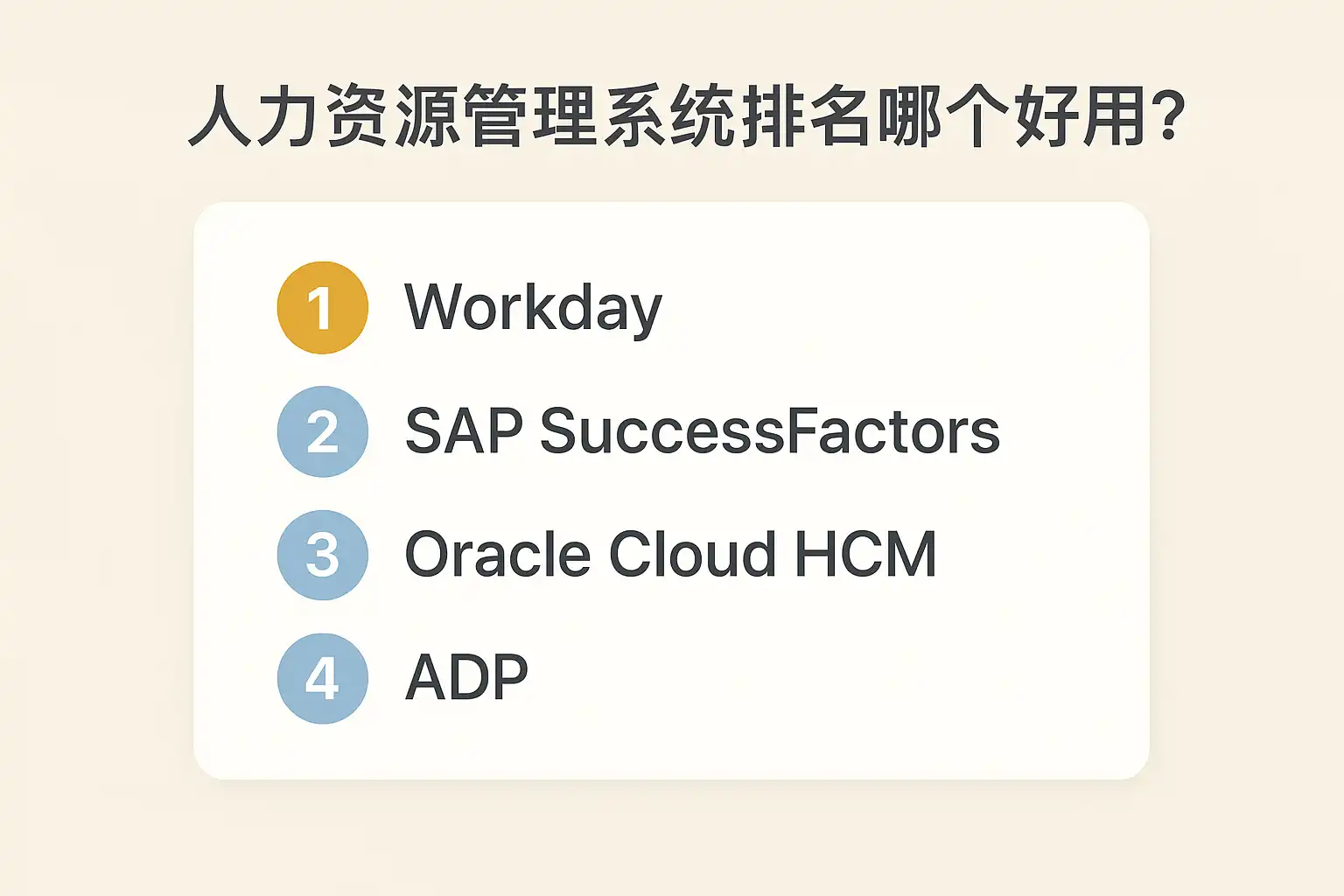 | 4 | SAP SuccessFactors | 大型跨国企业 | 全球人力资源管理 | 国际化、功能强大 |