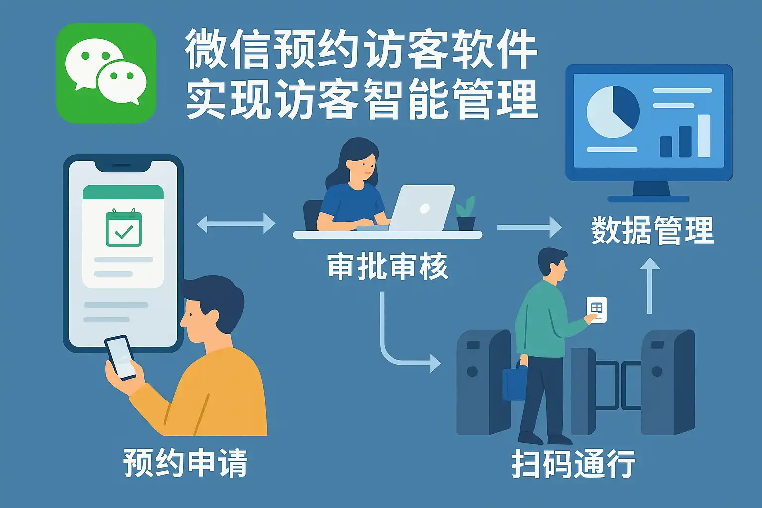 作为企业管理员,我想了解微信预约访客软件智能管理具体包含哪些功能?这些功能如何帮助提升访客预约的效率和体验?
