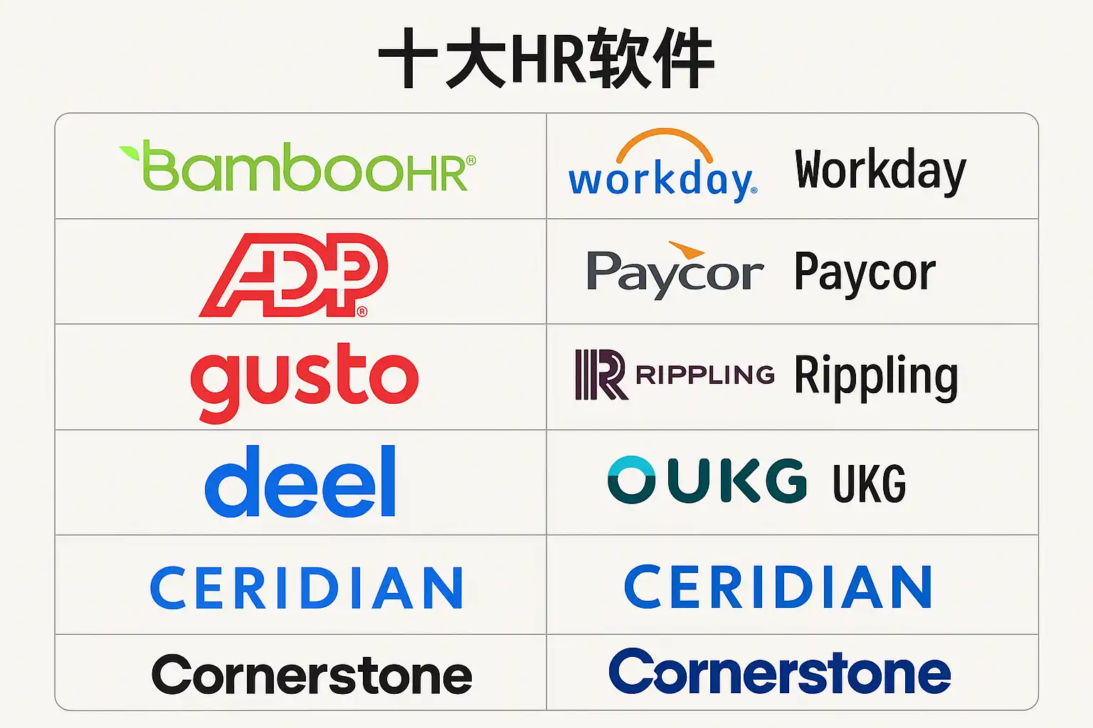 | 用友hcm | 各类 | 财务与人事协同 | 国内企业适配性强 |