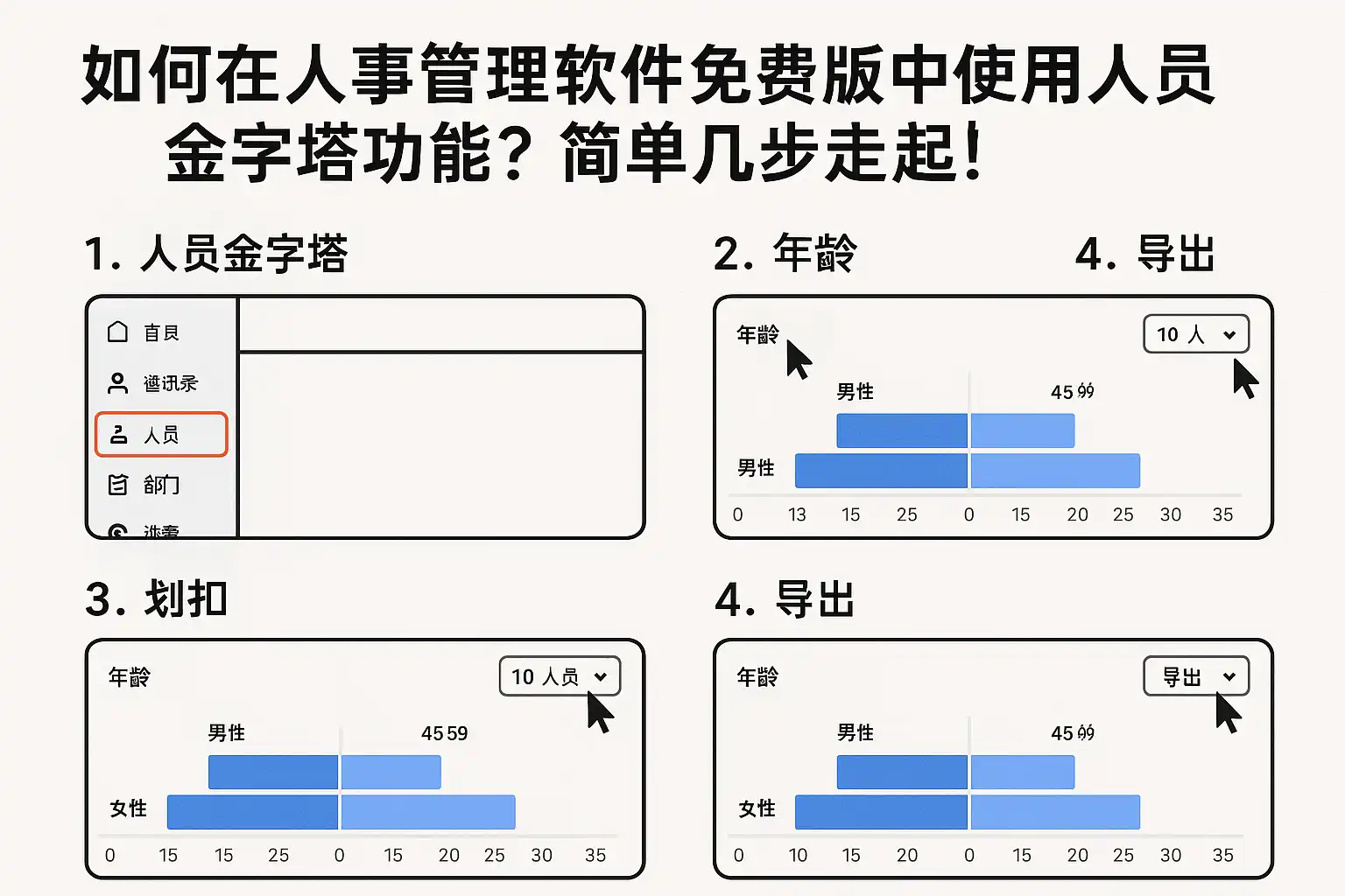 | 软件名称 | 人员金字塔维度 | 可视化能力 | 数据导出 | 支持自定义 | 典型优势 |