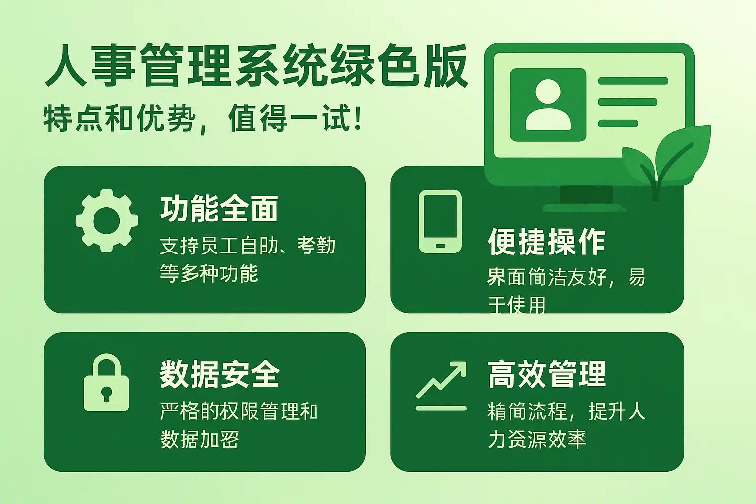 以上优势使人事管理系统绿色版成为HR数字化转型的理想选择。