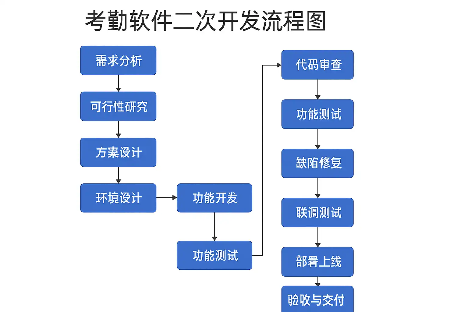 - 上线部署:将二次开发后的考勤软件部署到生产环境,进行用户培训和维护。