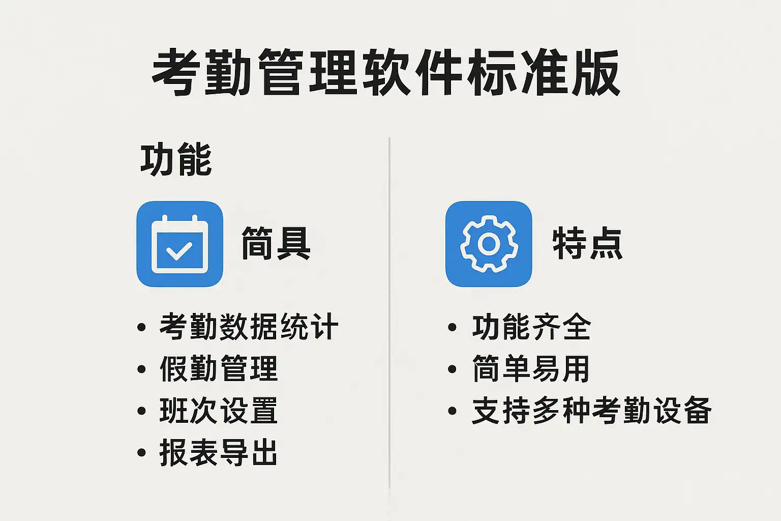 考勤管理软件标准版通常包含以下核心功能: