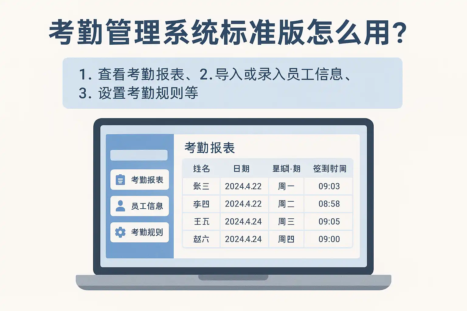 《考勤管理系统标准版操作指南,使用流程详解怎么用?》