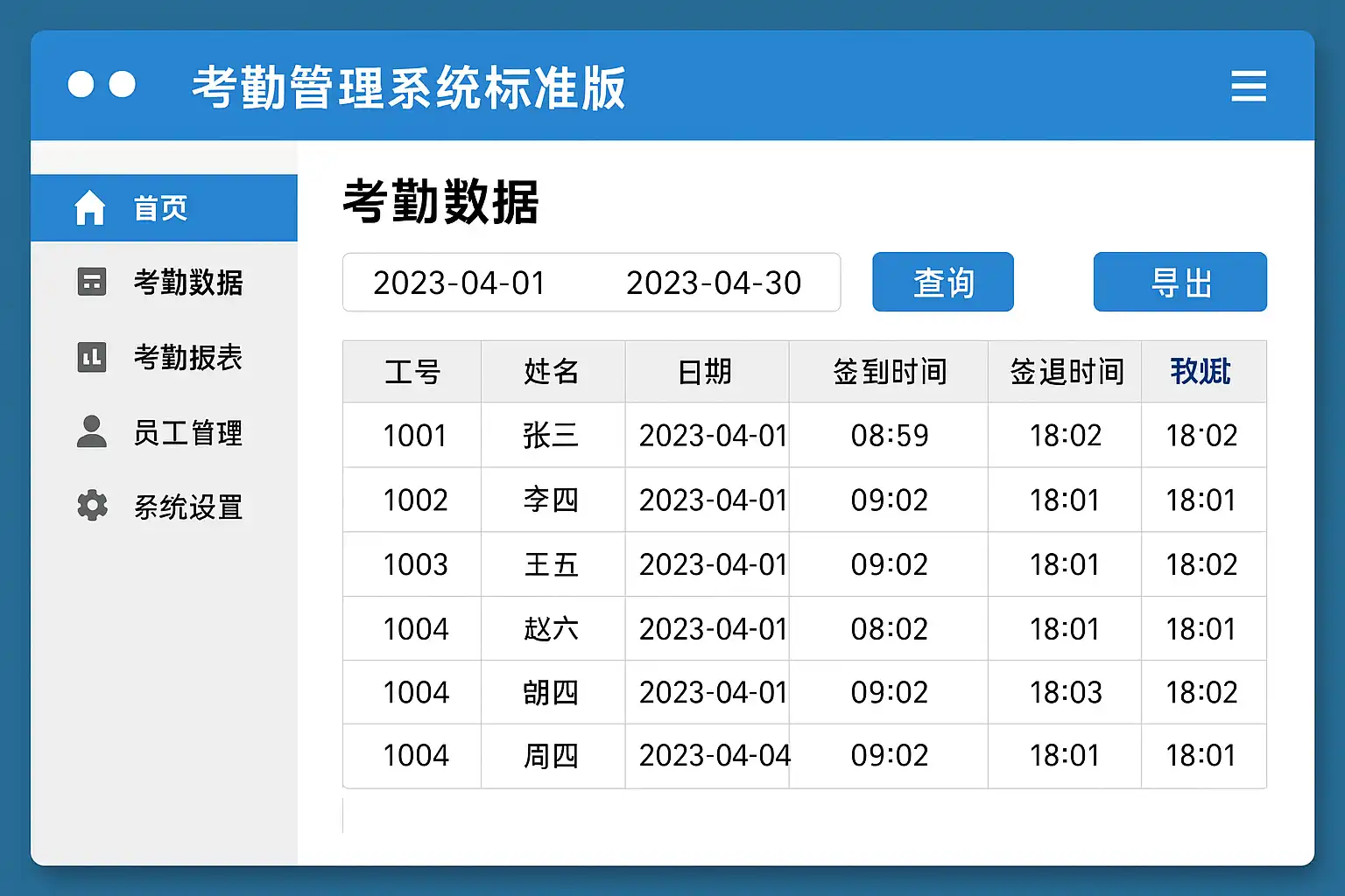 考勤管理系统标准版的设计目标是实现高效、准确的员工出勤管理。导出考勤记录是管理员的日常操作之一,具体步骤如下: