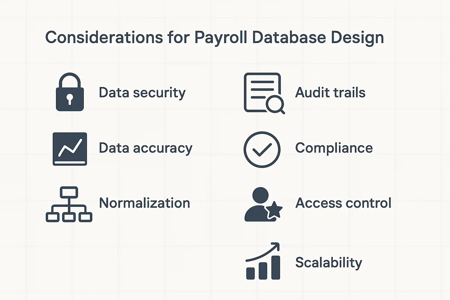 总结主要观点: 工资管理系统数据库设计应注重数据结构合理规划、数据一致性与安全保障、业务场景扩展适应、性能优化和冗余避免,严格遵循规范化设计与权限分级原则,才能有效规避常见问题,满足企业实际需求。