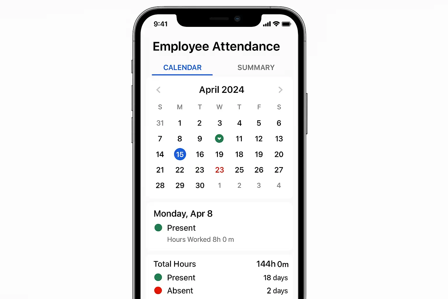 - 多场景一体化考勤:支持日常打卡、外勤签到、加班统计、请假审批、出差登记等。
