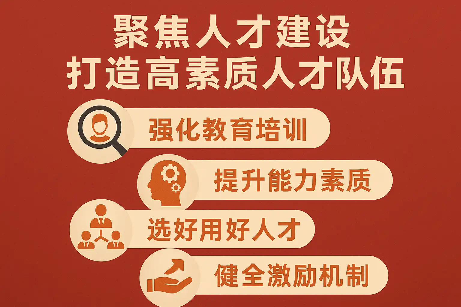 - 建立科学选拔与动态培养机制,充分挖掘和激发人才潜力。
