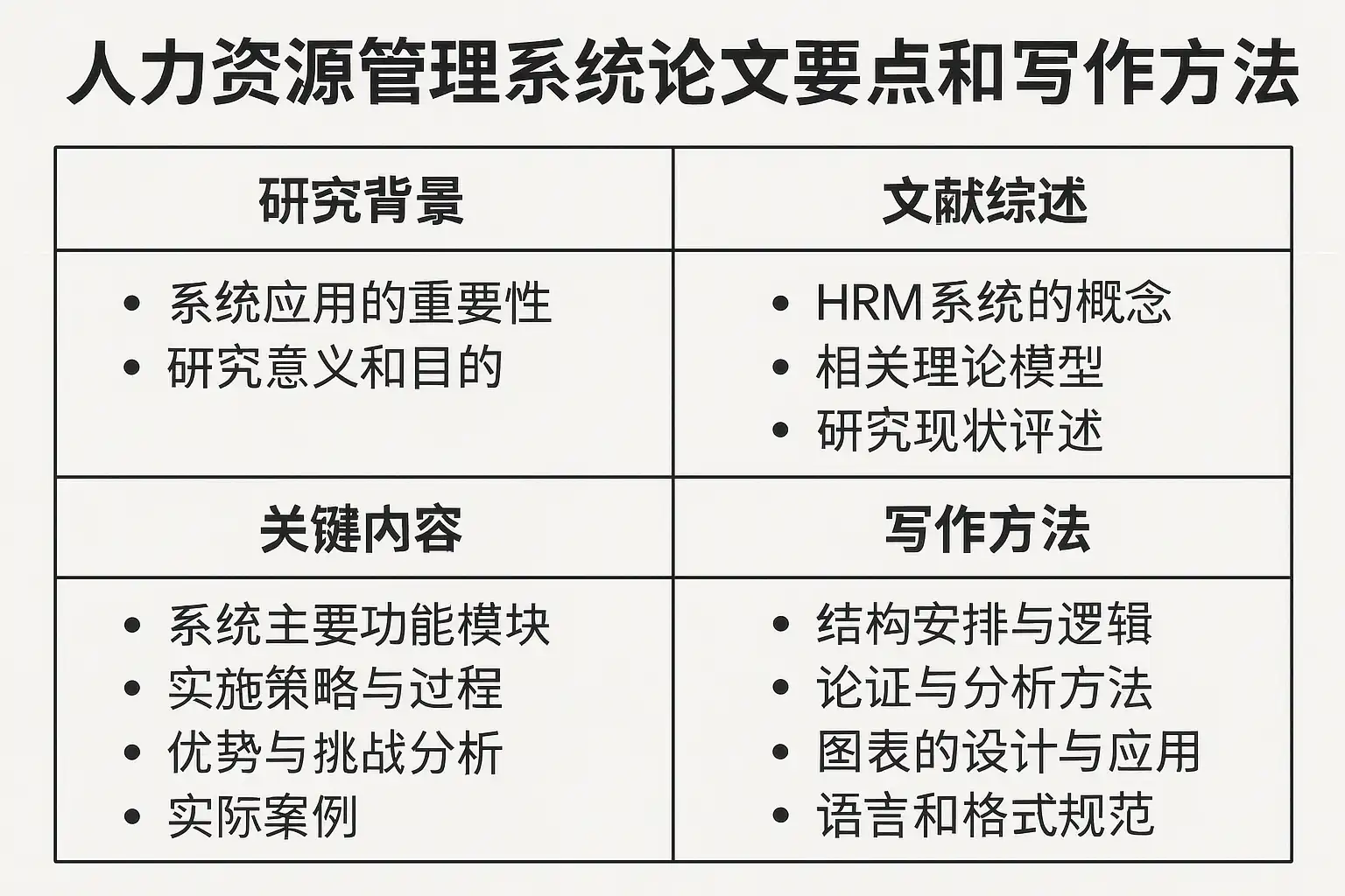我在写人力资源管理系统论文时,常常不知道应该重点突出哪些内容。核心要点到底包括哪些方面,怎样才能确保论文内容既全面又有深度?