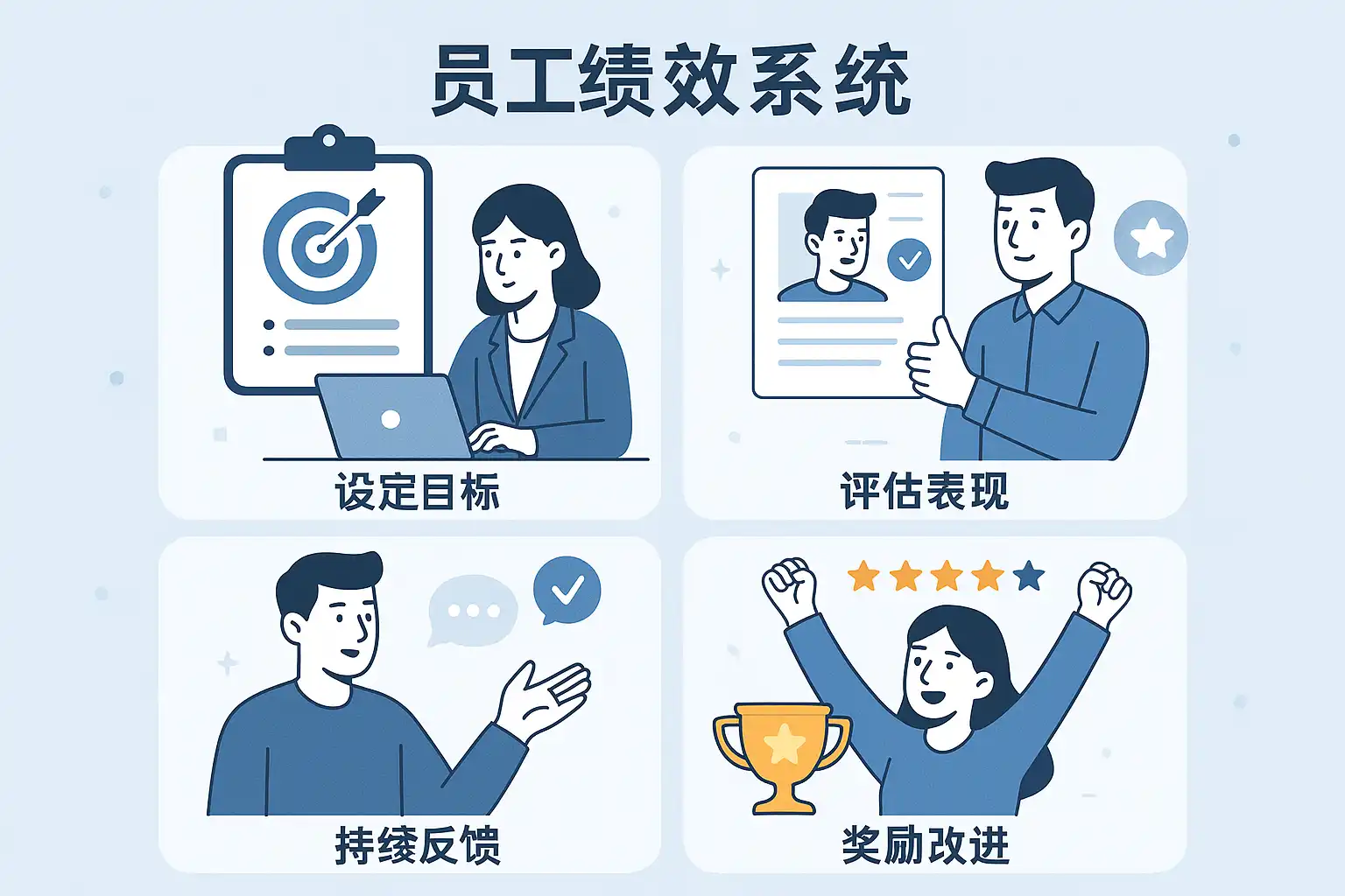 - 闭环管理:对低绩效员工制定改进计划,定期跟进,形成持续提升的闭环。