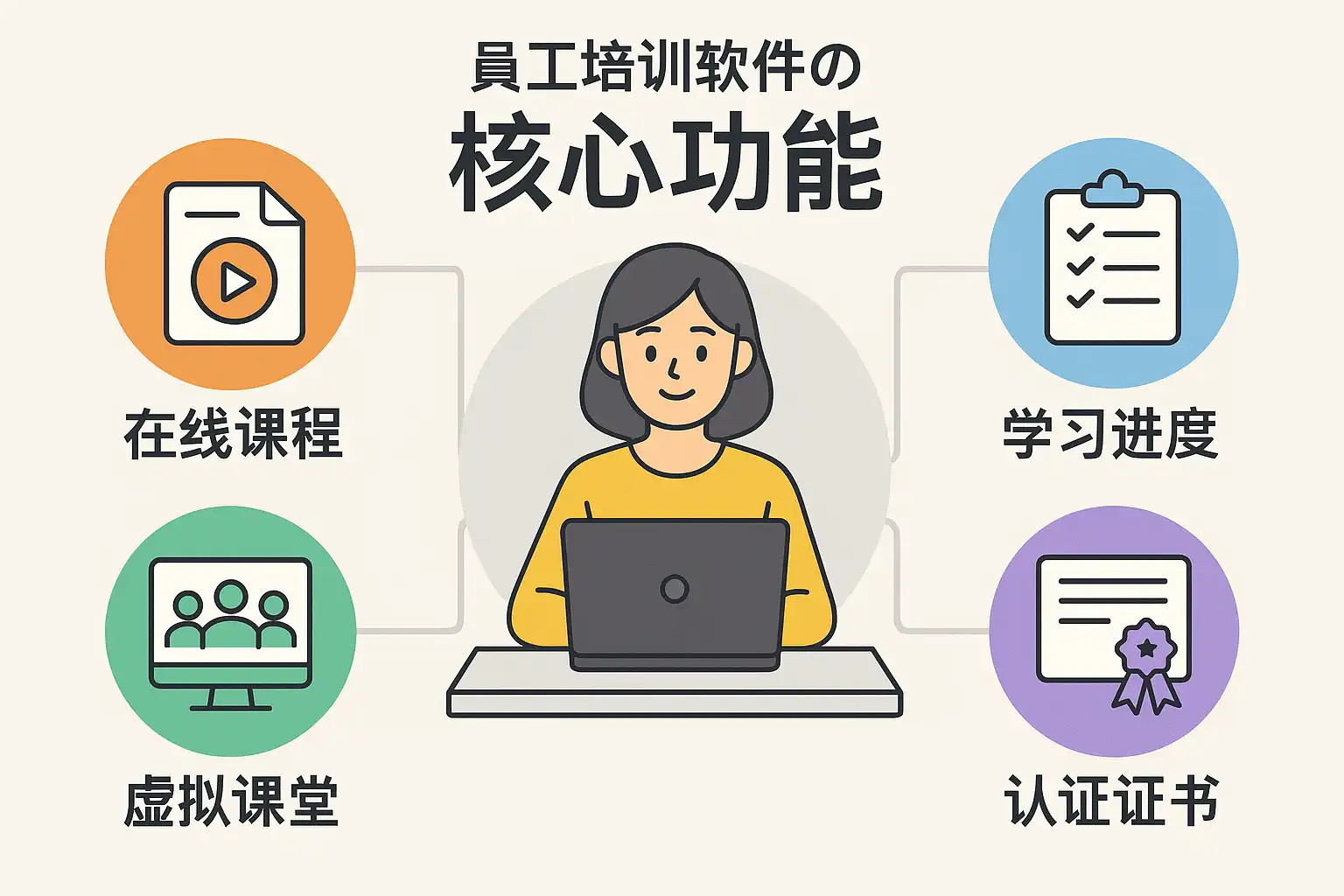 | 课程管理 | 支持上传、分类、更新各类培训课程和学习资料 |