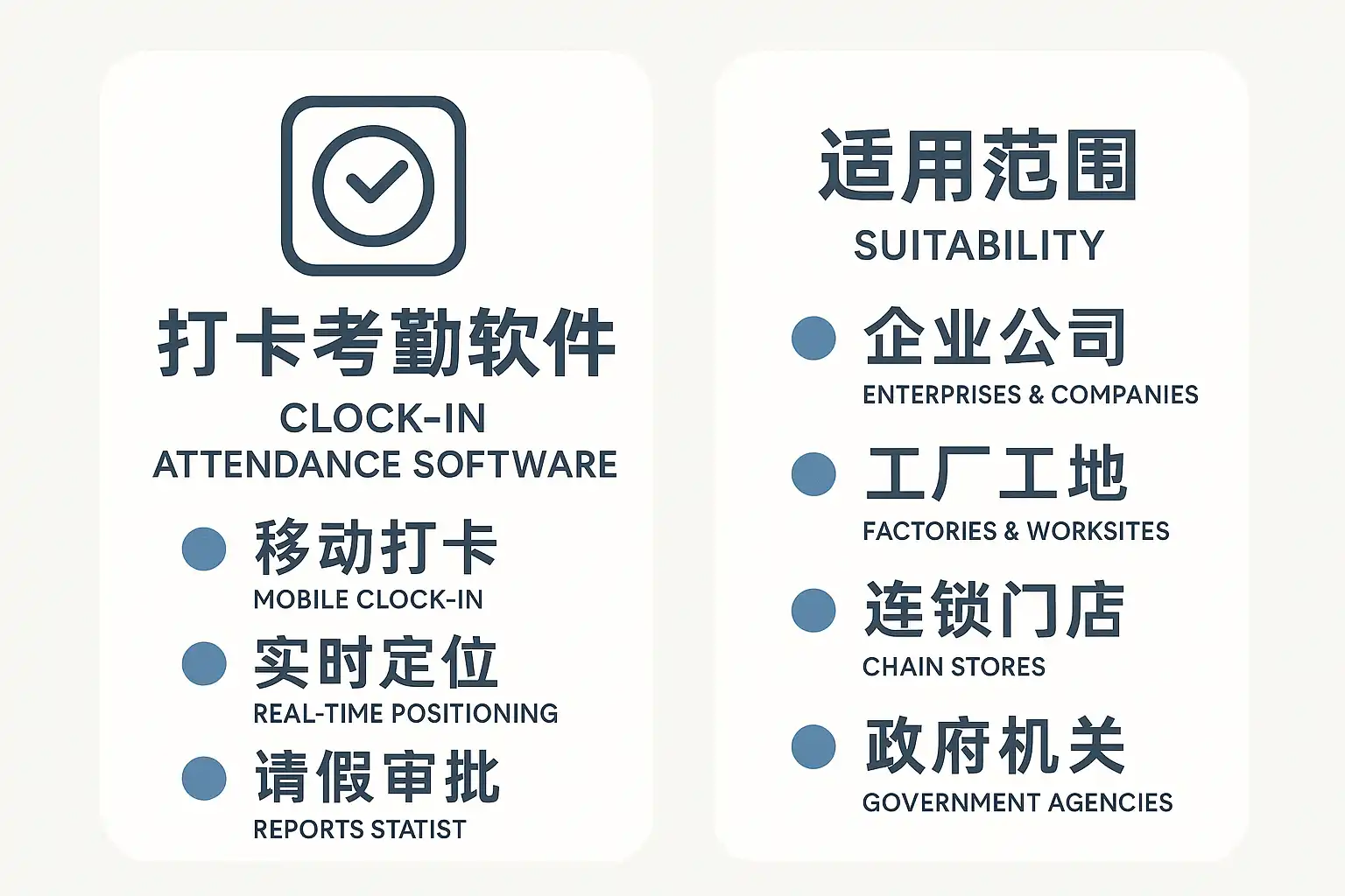 | 教育/医疗/公益机构 | 需追踪教职工、医护人员的出勤与排班 | 学校、医院、社会组织 |