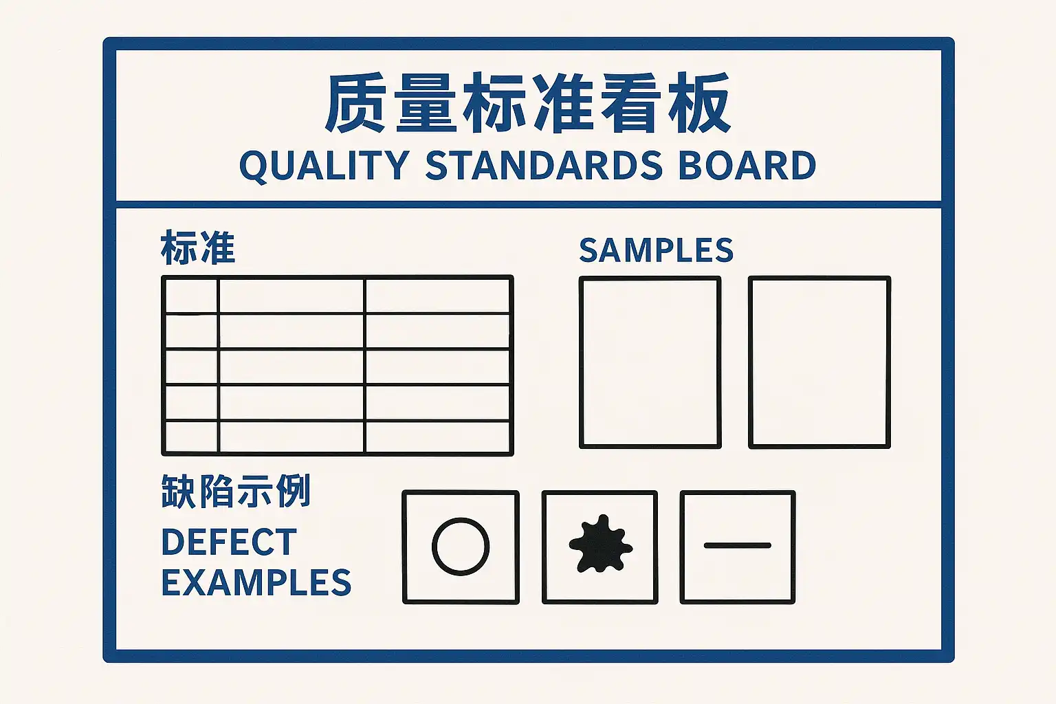 生产品质标准看板的核心要素包括: