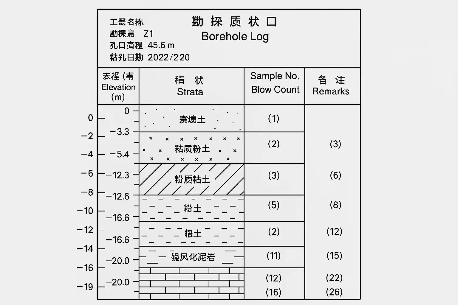 - 数据收集:汇总钻孔编号、坐标、地层深度、土层属性等原始信息。