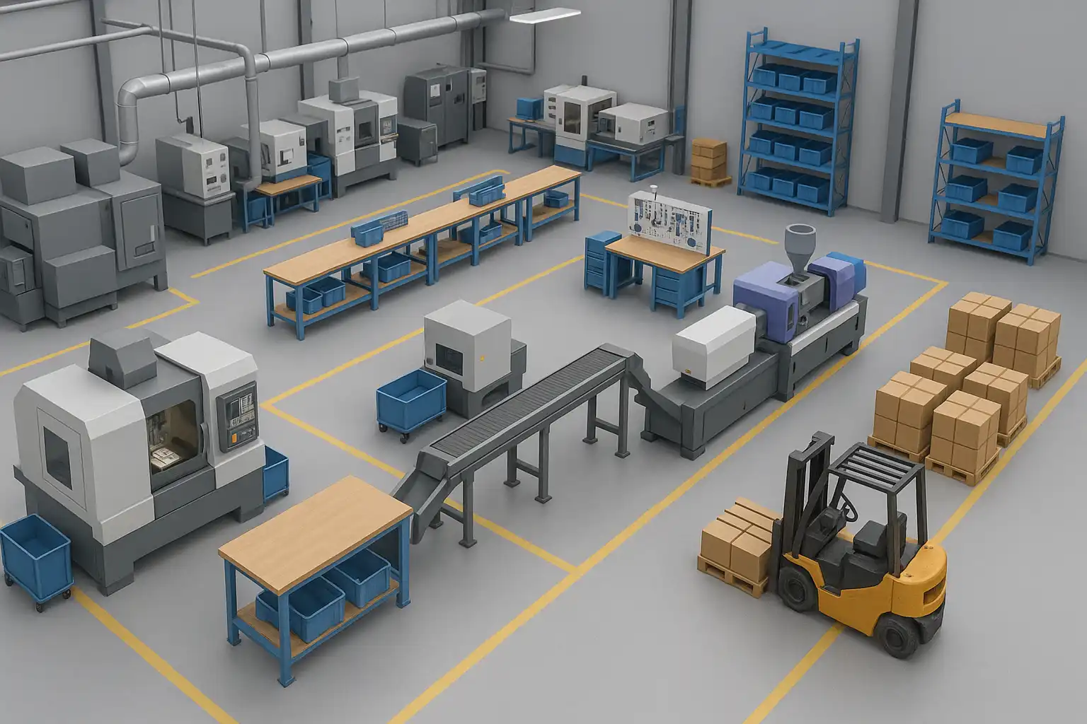 - CAD(计算机辅助设计):用于绘制车间布局图和设备模型。例如,使用AutoCAD绘制机器设备的二维平面图。