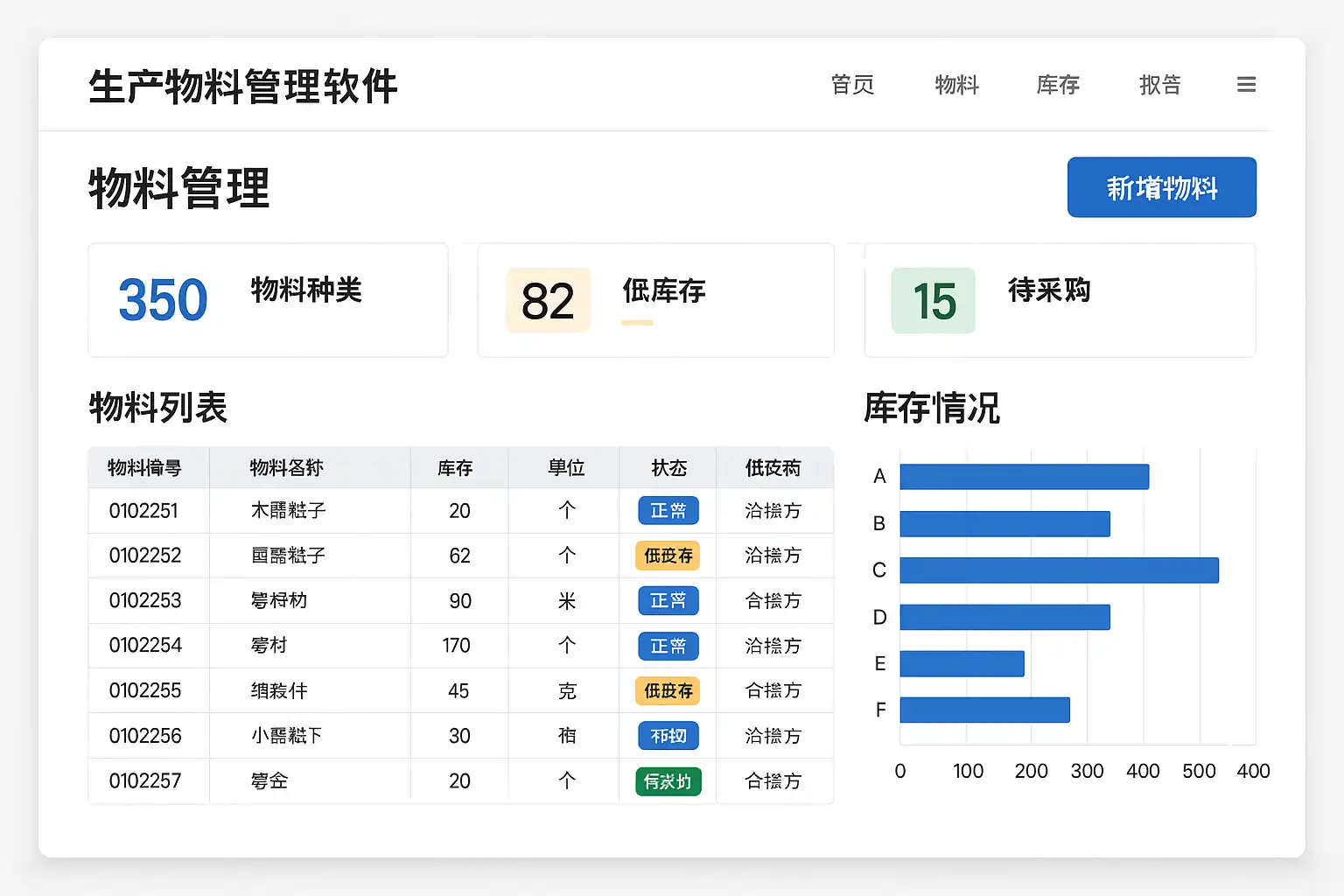 在传统生产管理中,物料库存常常出现账实不符、积压、短缺等问题,导致生产停滞或资金占用。生产物料管理软件通过条码/RFID识别、自动入出库、智能预警、动态盘点等功能,实时掌控库存动态。例如,简道云生产管理系统支持多仓库、多物料、多单位管理,能够设置最低安全库存线,自动预警补货。企业通过系统化管理,实现库存精细化,既保障生产需求,又降低库存成本,有效提升企业运营效率。