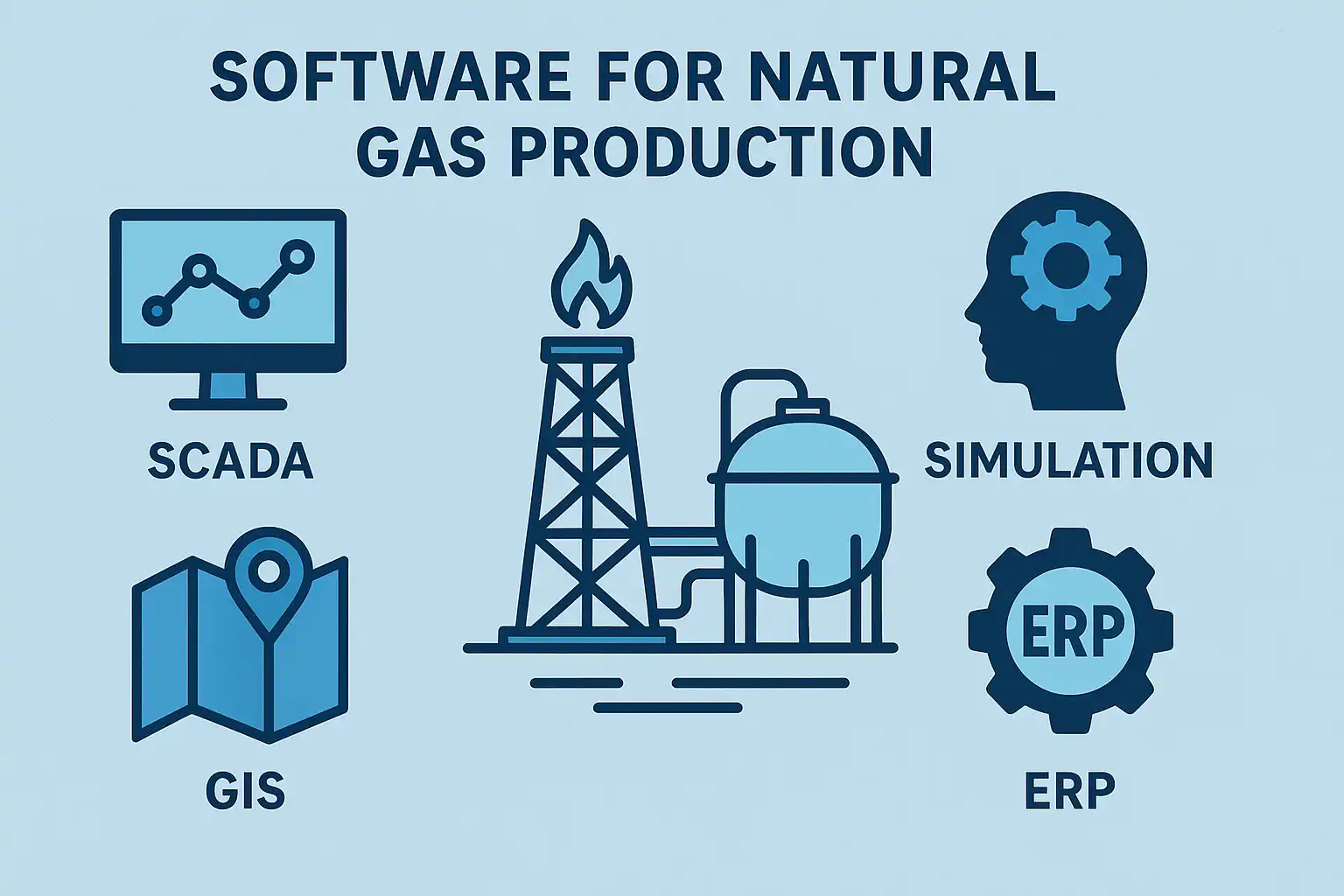天然气生产涉及从原料采集、加工处理、输送到销售的复杂流程。不同环节对软件系统的需求各有侧重。以下为主要类别及其核心功能列表: