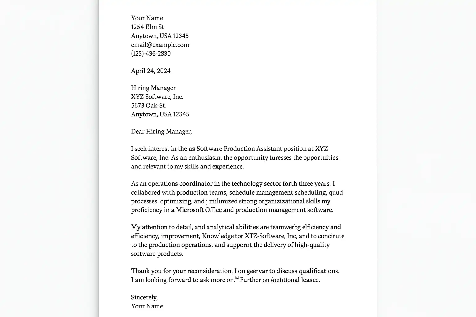 软件公司生产助理求职信怎么通过结构化布局提升可读性和吸引力?
