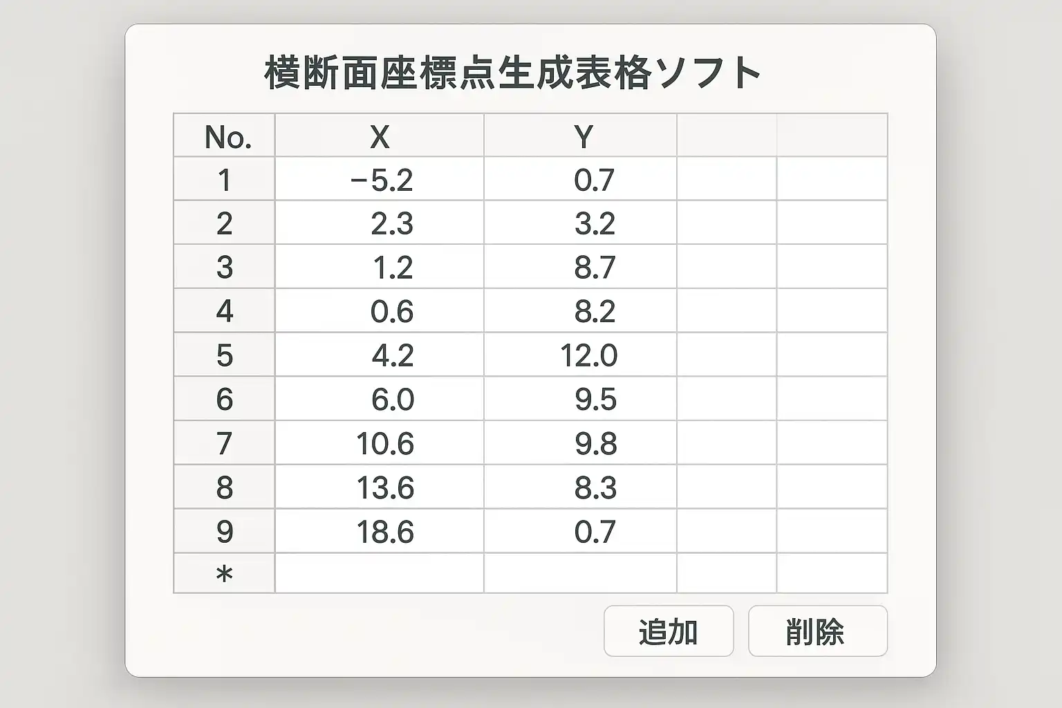 横断面坐标点生产表格软件的核心功能主要包括: