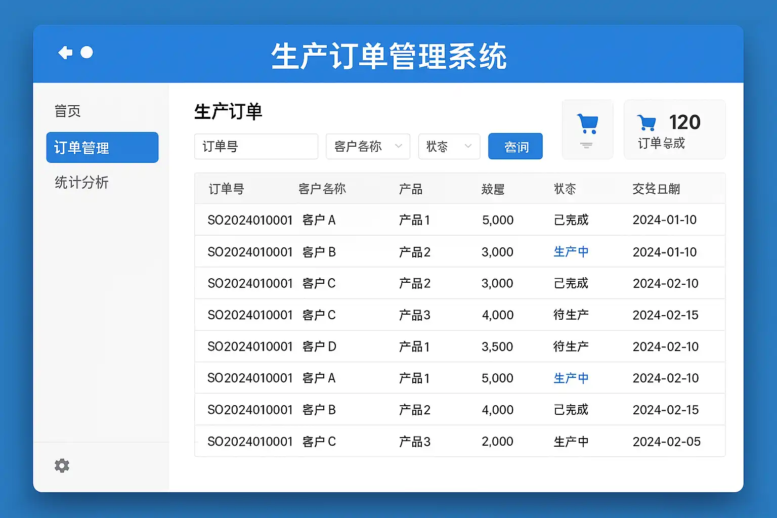 数据可视化是现代生产管理的重要趋势。生产订单管理系统能够将订单、生产进度、库存、交付等关键数据集成到统一平台,实时展示。具体表现如下: